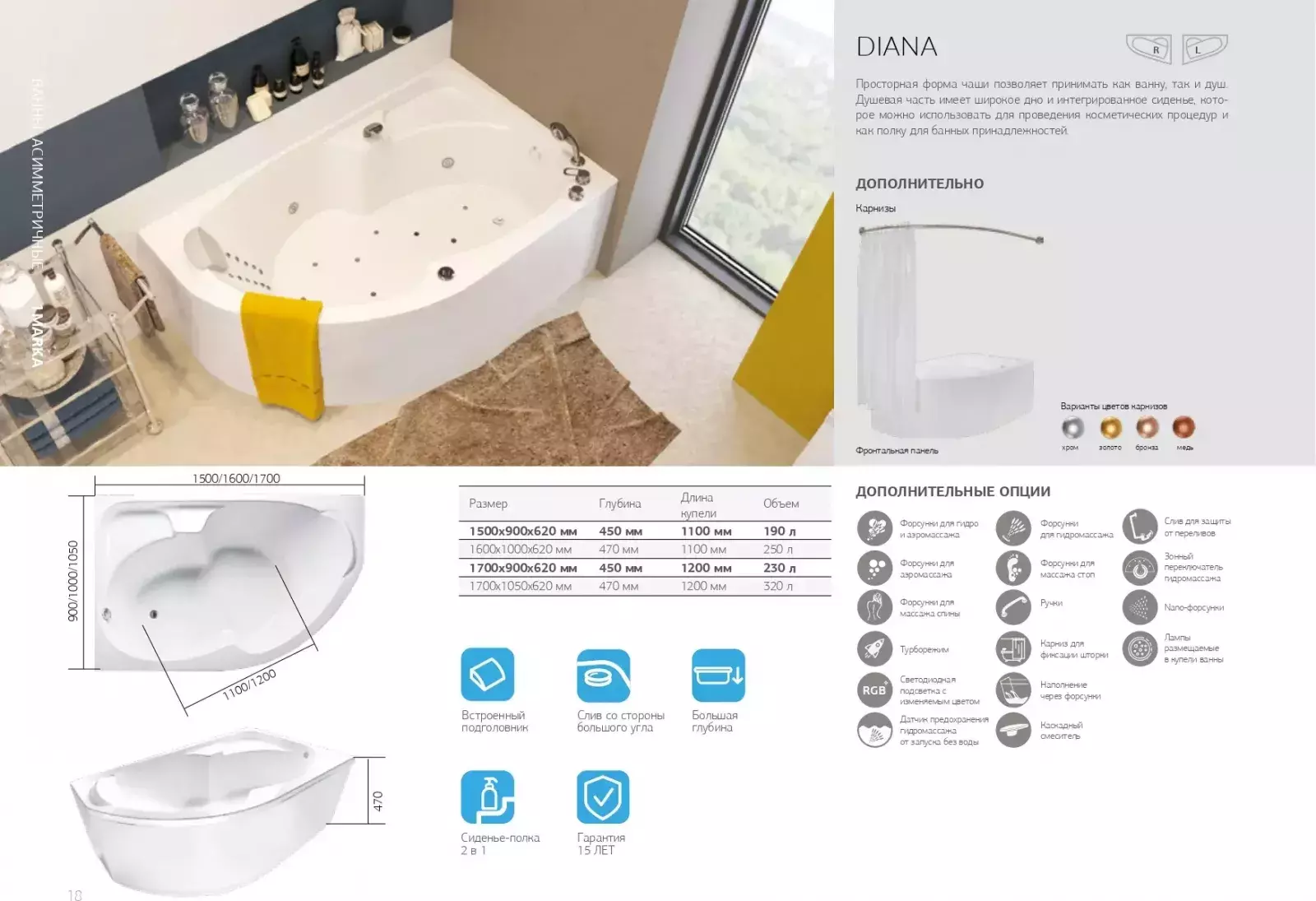 Ванна акриловая 1Marka Diana 170x90 см L, Размер - мм: 1700х900 - фото