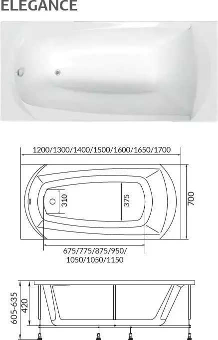 Ванна акриловая 1Marka Elegance 150x70 см, Размер - мм: 1500х700 - фото
