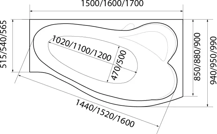 Ванна акриловая 1Marka Gracia 170x100 см R, Размер - мм: 1700х1000 - фото