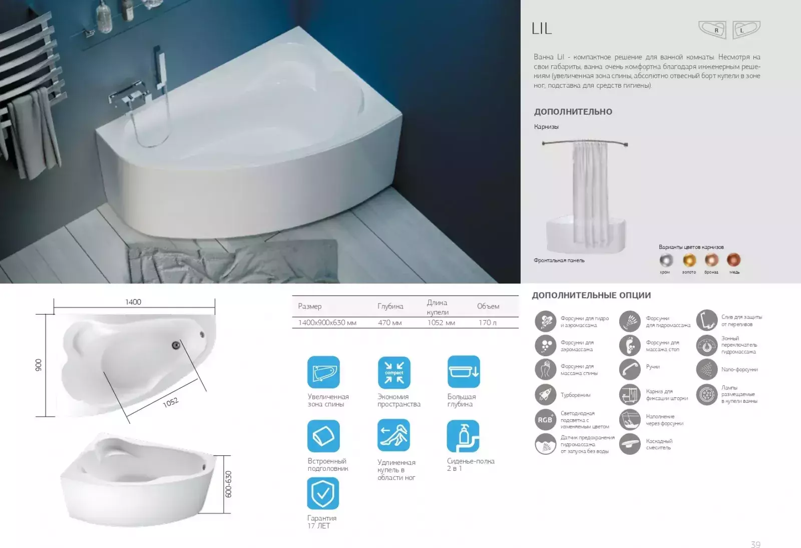 Ванна акриловая 1Marka Lil, размер 1400x900 см, цвет белый. Каркас, панель и сифон приобретаются отдельно.