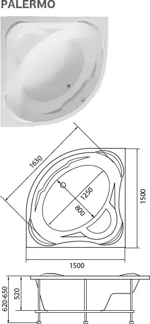 Ванна акриловая 1Marka Palermo 150x150 см, Размер - мм: 1500х1500 - фото