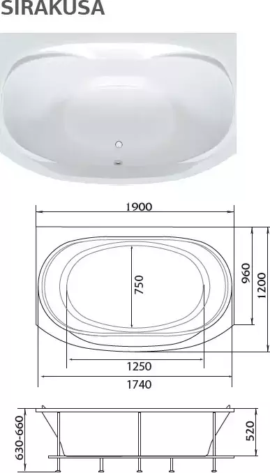Ванна акриловая 1Marka Sirakusa New 190x120 см