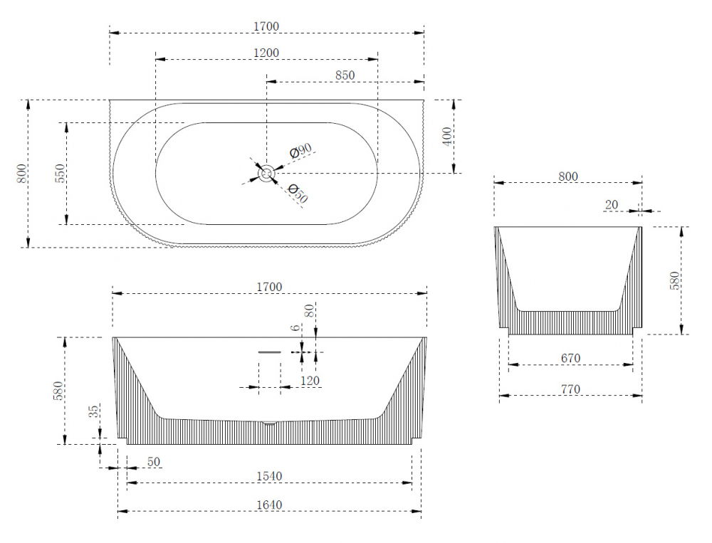 Ванна акриловая Abber AB9330-1.7 170x80 см