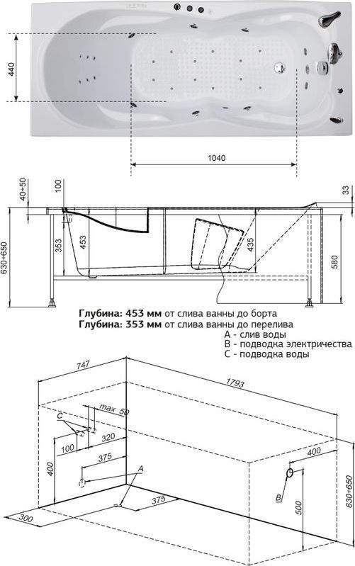 Ванна акриловая Aquanet Viola, размер 1793х747х647 мм, цвет белый.