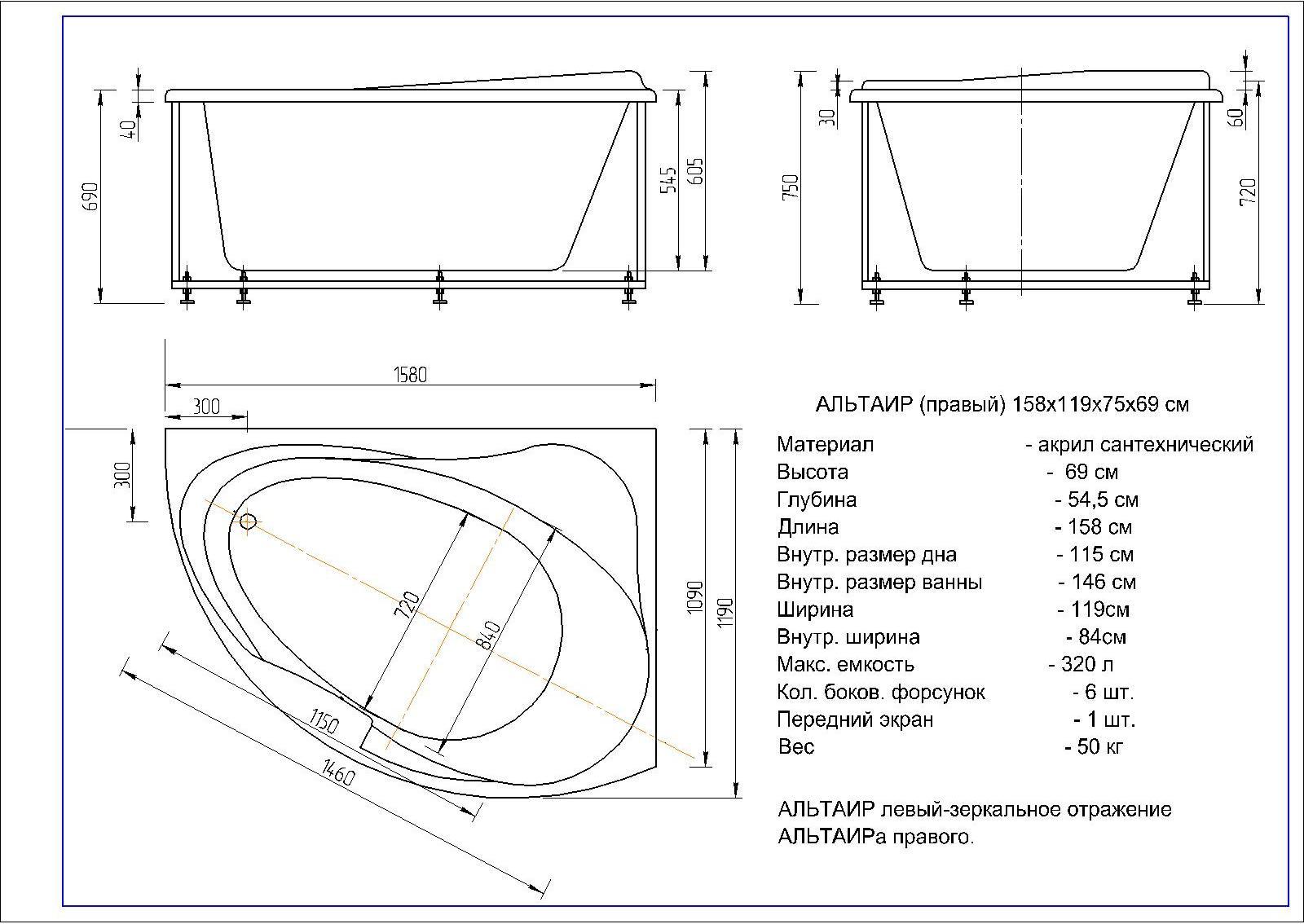 Ванна акриловая Aquatek Альтаир R 160x120 см ALT160-0000008