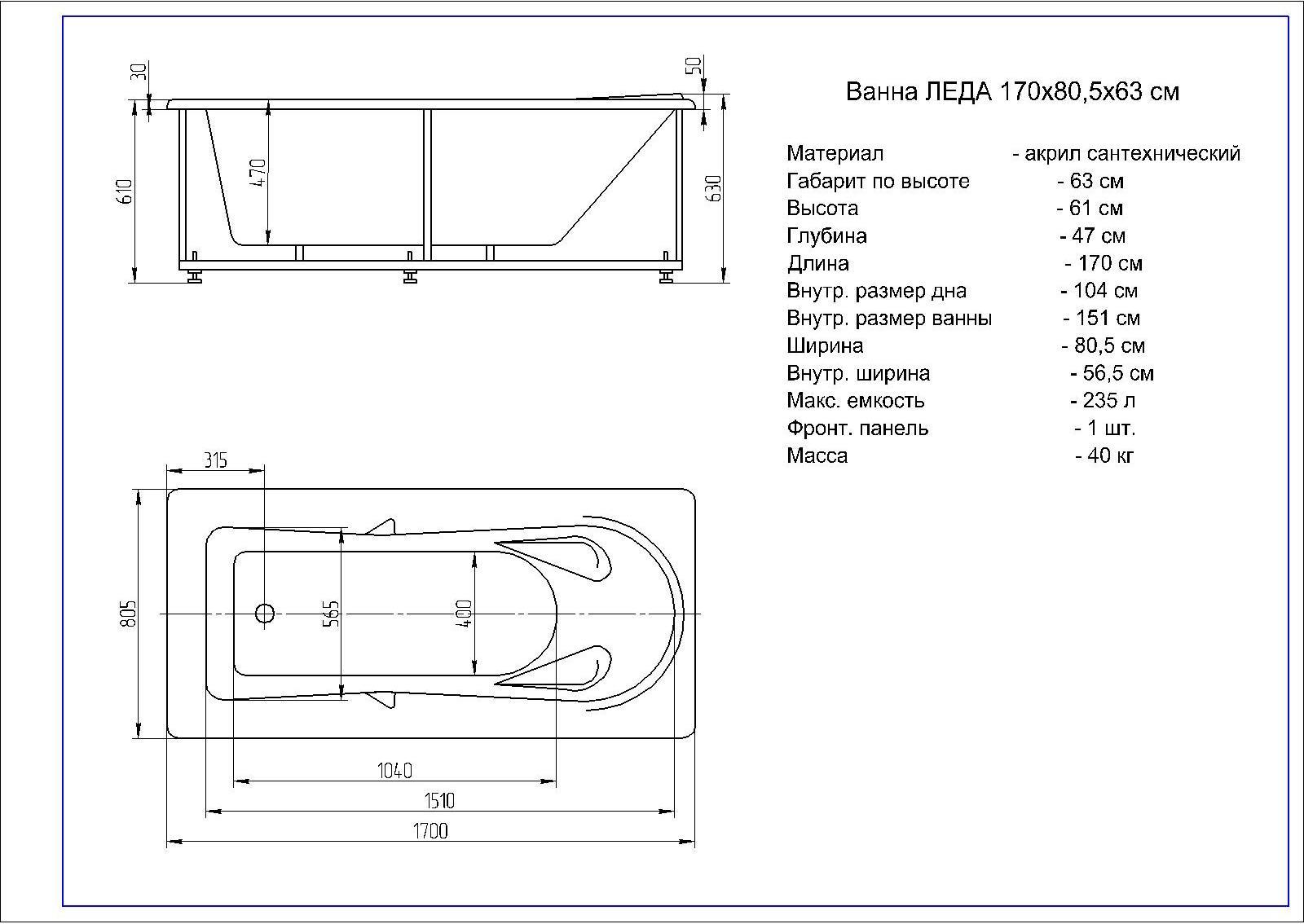Ванна акриловая Aquatek Леда 170x80 см LED170-0000047