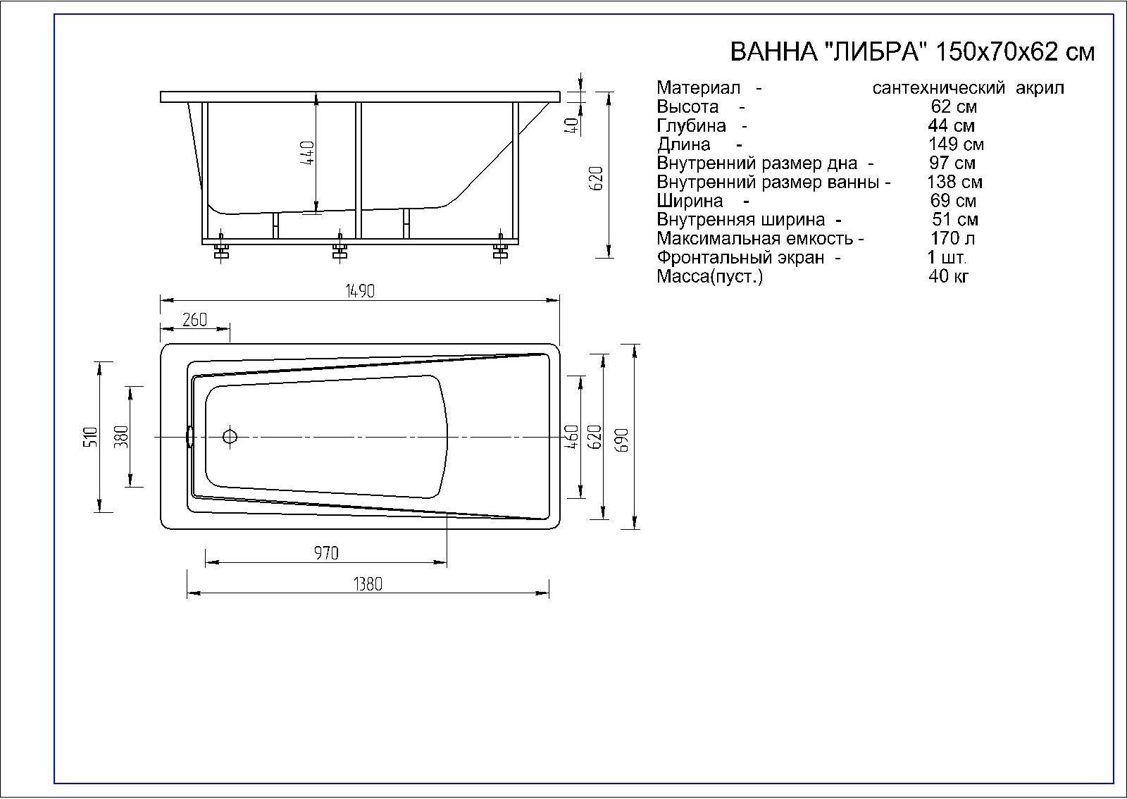 Ванна акриловая Aquatek Либра 150x70 см LIB150-0000037