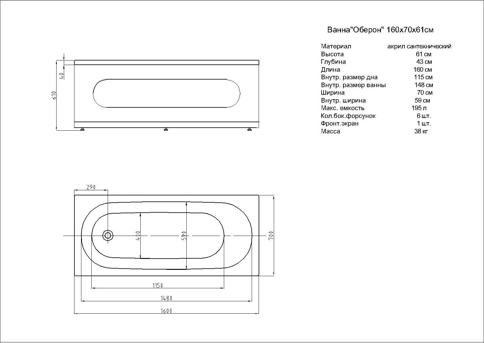 Характеристики ванна Aquatek (OBR160-0000039)
