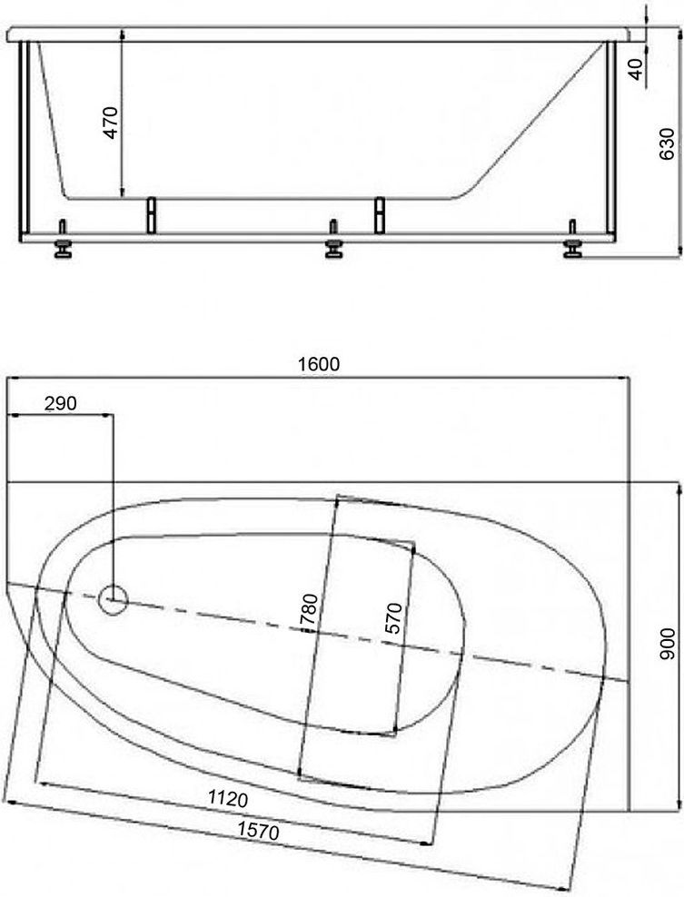 Ванна акриловая Azario Kapris, размер 160x90 см, цвет белый.
