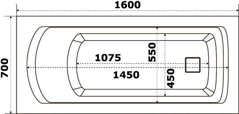 Ванна акриловая Bas Аякс с каркасом, размер 1600х700 мм. Цвет белый.