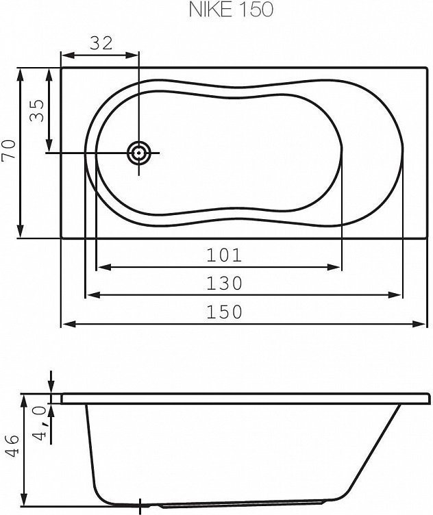 Ванна акриловая Cersanit Nike 150x70 см