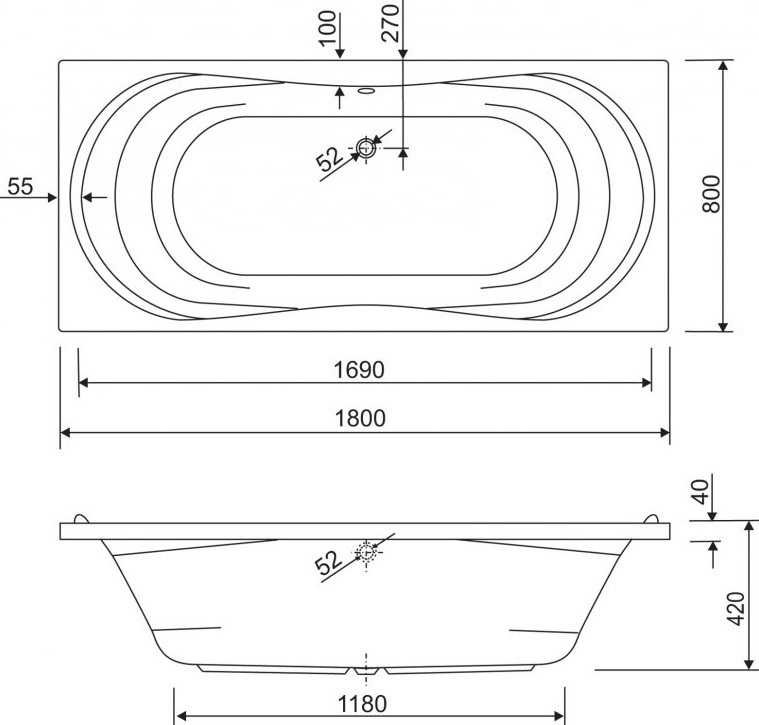 Характеристики ванна Cezares (APOLLO-180-80-49)