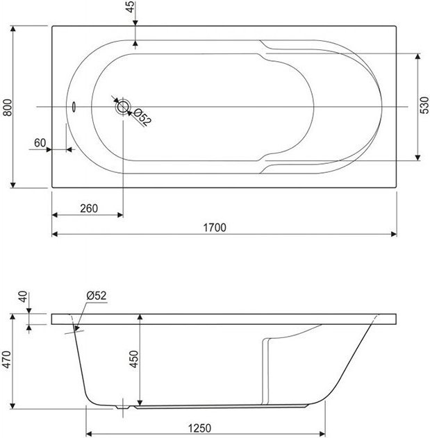 Ванна акриловая Cezares Arno 170x80 см ARNO-170-80-45