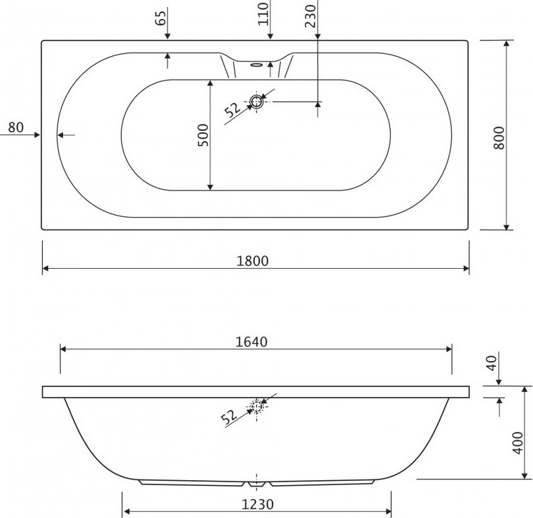 Ванна акриловая Cezares Calisto 1800x800x400 мм, цвет белый.