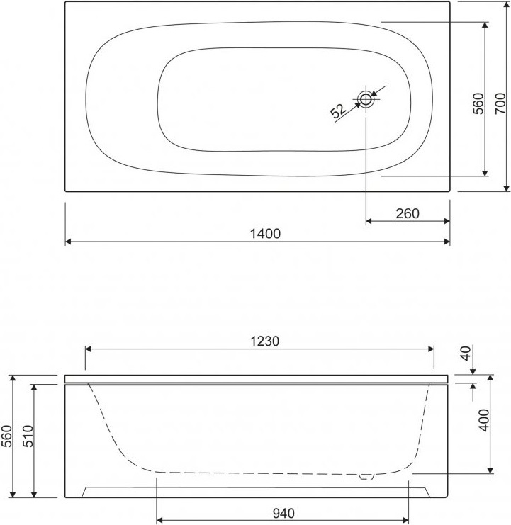 Ванна акриловая Cezares Eco 1400x700x400 мм, цвет белый.