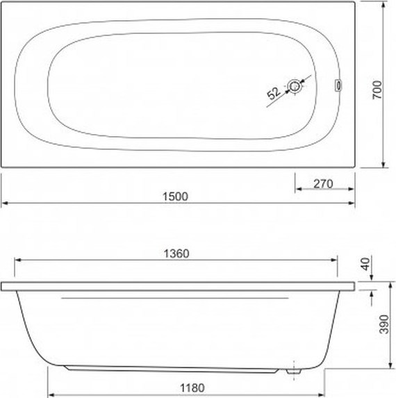 Ванна акриловая Cezares Piave 1500x700x420 мм, цвет белый.