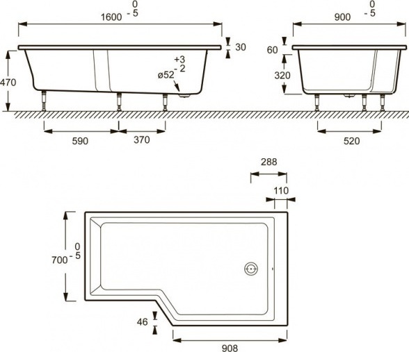 Ванна акриловая Jacob Delafon Bain Douche Neo 160х90 см R E6D000R-00, цвет- белый. В комплекте ножки.