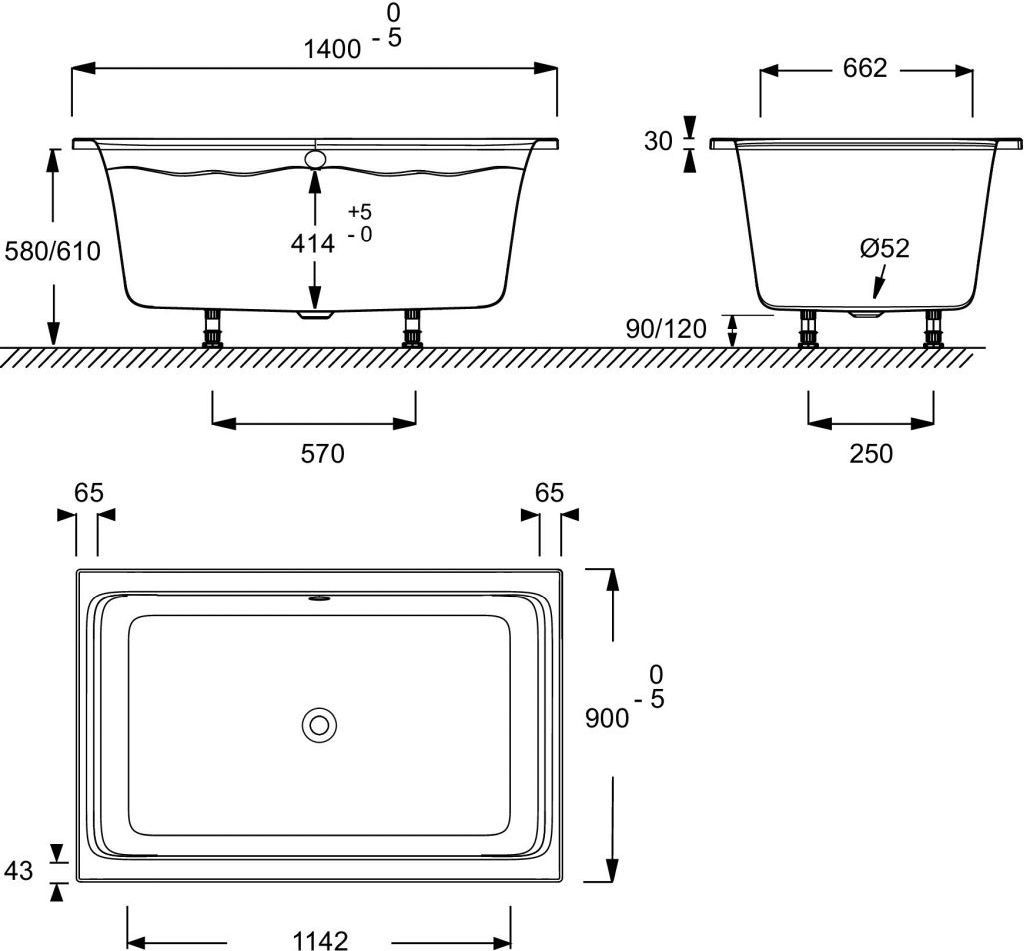 Ванна акриловая Jacob Delafon Capsule 140х90 см E6D123-00, цвет- белый. В комплекте регулируемые ножки.