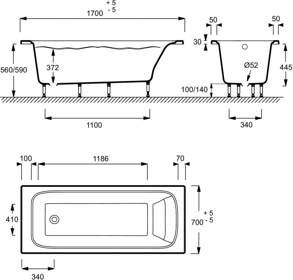 Ванна акриловая Jacob Delafon Elite 170х70 см E6D030RU-00 с ножками