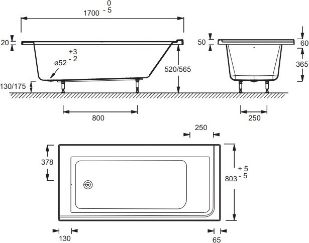 Ванна акриловая Jacob Delafon Formilia 170х80 см E6139L-00, левосторонняя.