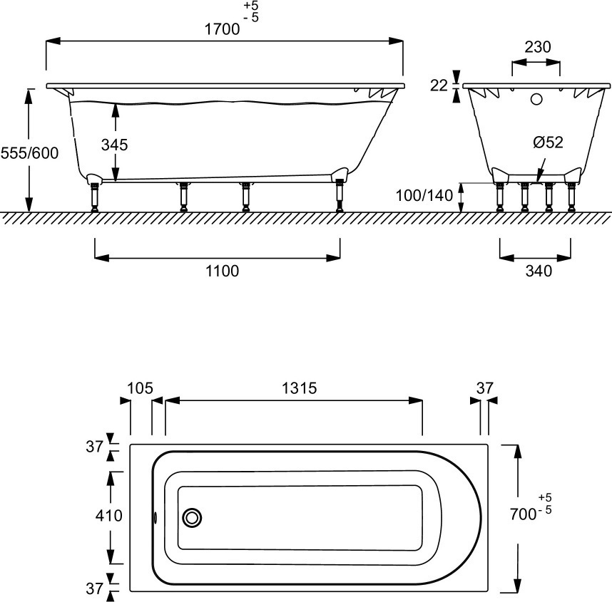Ванна акриловая Jacob Delafon Odeon Rive Gauche 170х70 см E6D151-00 с ножками