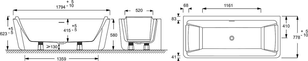 - Легкая (55 кг), но прочная ванна при высоких нагрузках (до 150 кг)