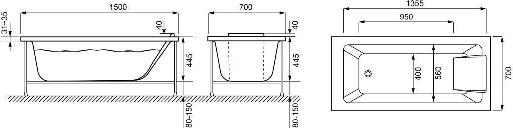 Ванна акриловая Jacob Delafon Sofa 150х70 см E6D300RU-00.