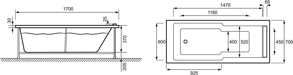Ванна акриловая Jacob Delafon Struktura 170х70 см E6D306RU-00