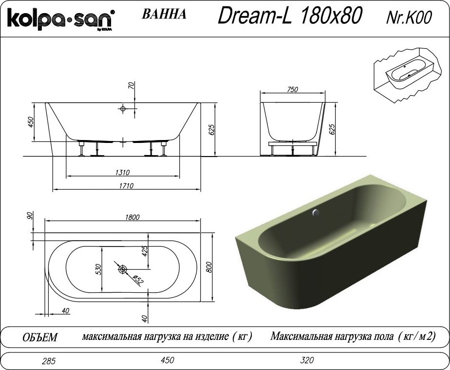 Характеристики ванна Kolpa-San (Dream SP_2)