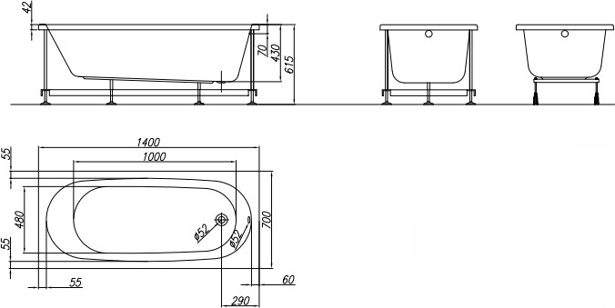 Ванна акриловая Kolpa-San Tamia 140x70 см