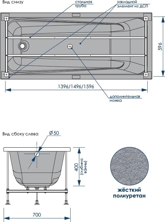 Ванна акриловая Loranto Calgary 150x70 см