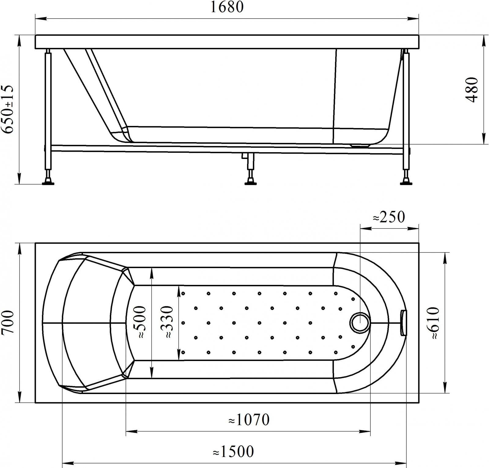 Ванна акриловая Радомир Николь 168x70 см, каркас в комплекте, цвет белый. Сифон и панели приобретаются отдельно.