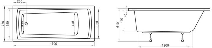 - ванна Domino Plus 170х75 см, цвет белый