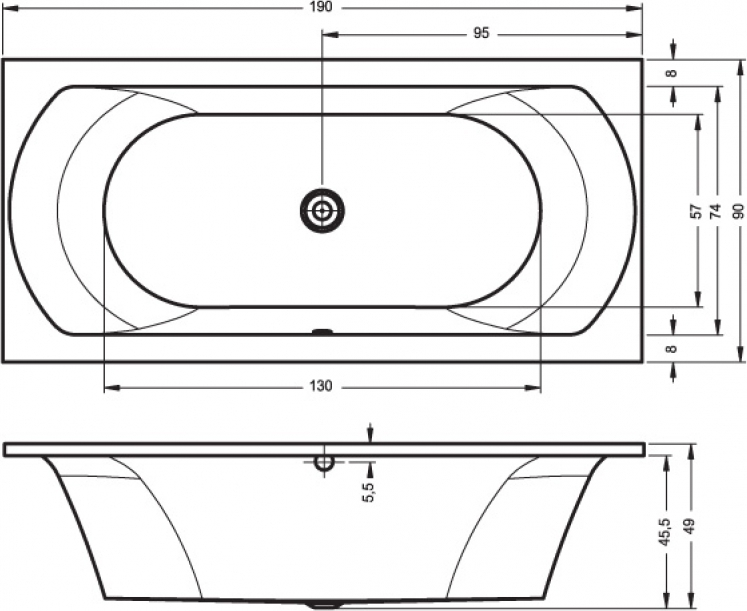 Ванна акриловая LIMA 1900x900 мм, толщина бортика 35 мм, цвет белый.