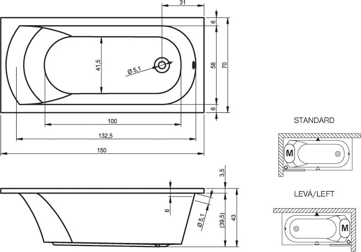 Ванна акриловая Riho MIAMI 150x70 см B058001005