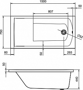 Ванна акриловая Santek Фиджи 150x75 см 1.WH50.1.598