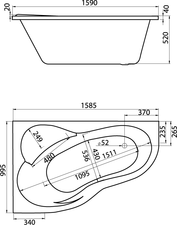 Ванна акриловая Santek Ибица, размер 160x100, асимметричная, правосторонняя, цвет белый.
