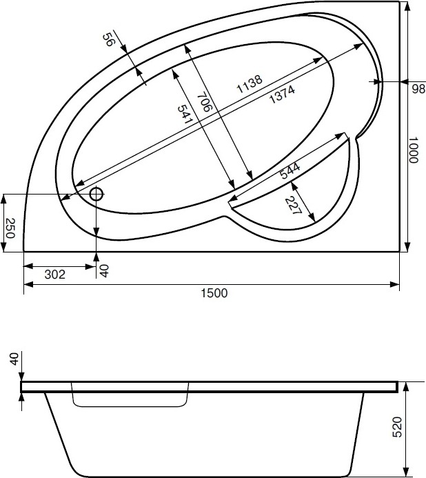 Ванна акриловая Santek Шри-Ланка, размер 150x100 см, асимметричная, левосторонняя, цвет белый.