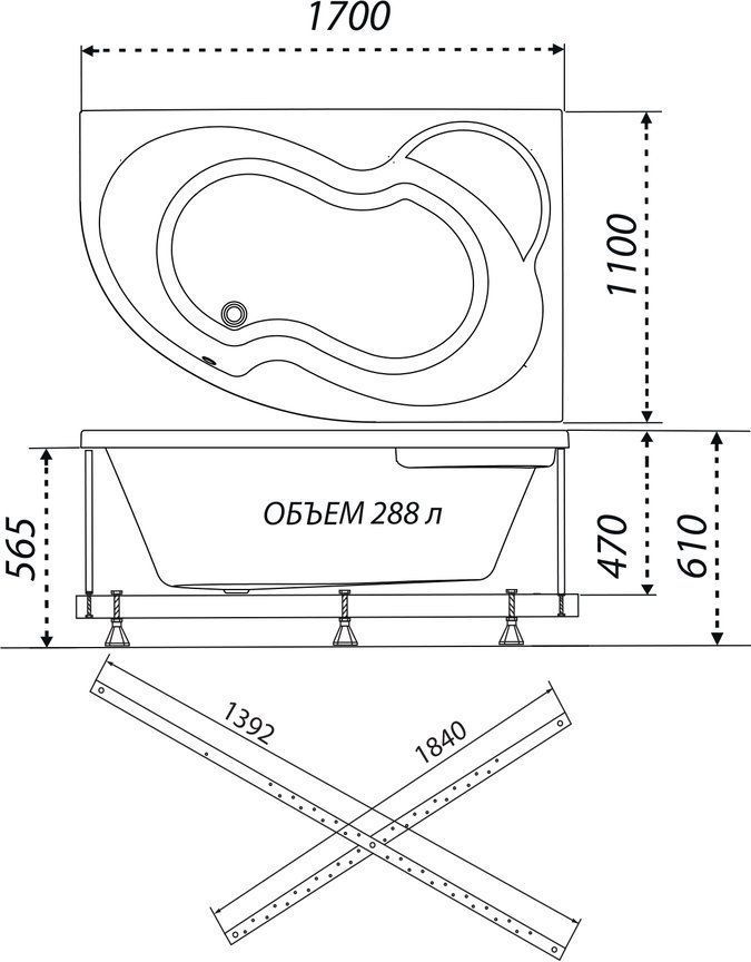 Ванна акриловая Тритон Мари 170х110 см L с каркасом