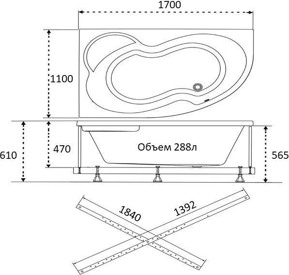 Ванна акриловая Тритон Мари 170х110 см R с каркасом