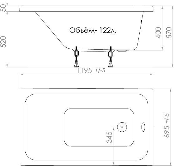 Ванна акриловая Тритон Ультра 120х70 см