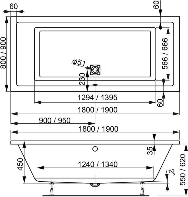 Ванна акриловая Vagnerplast Cavallo, размер 1900х900 мм, цвет белый.