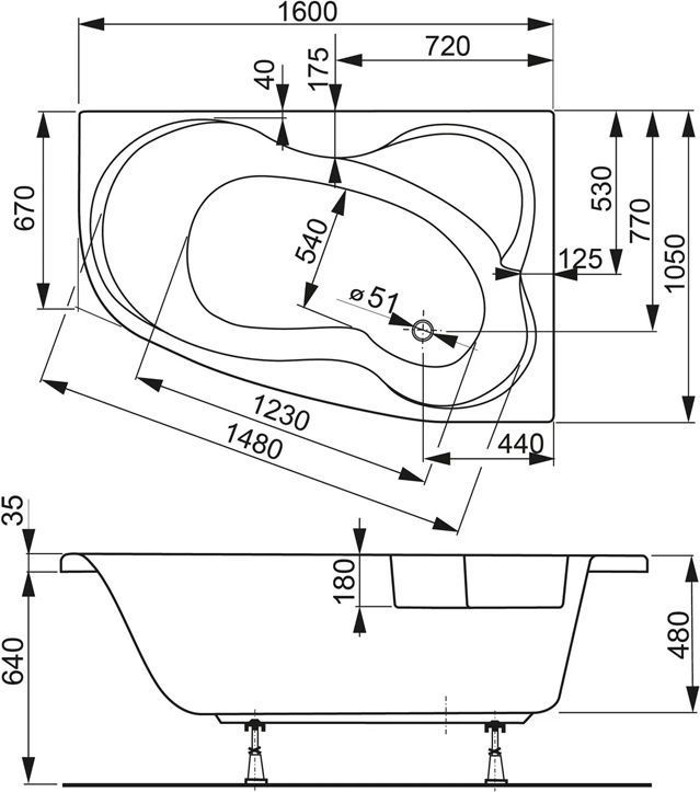 Ванна акриловая Vagnerplast Melite 160x105 см 76411 R