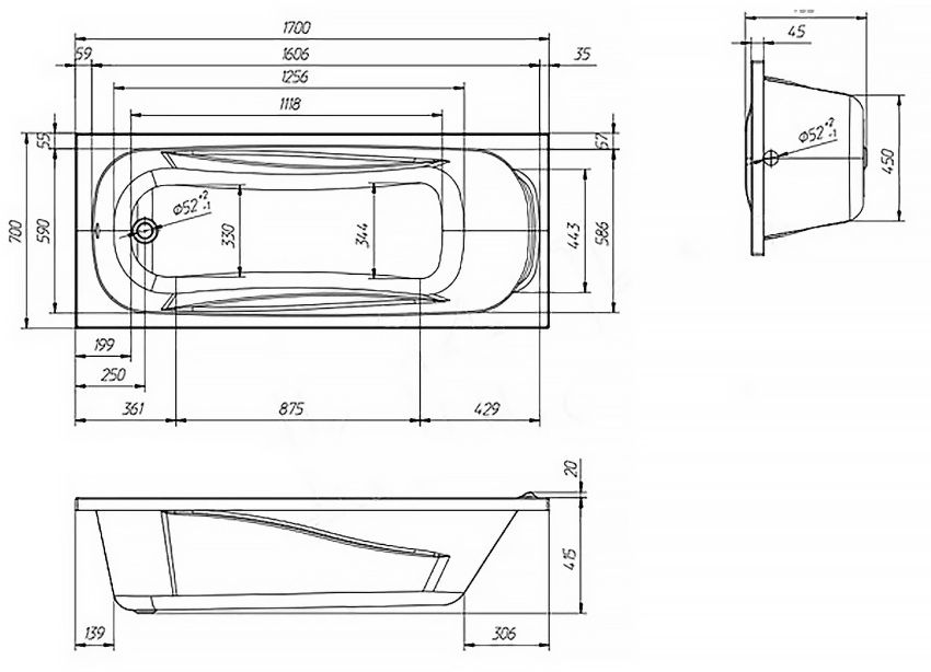Характеристики ванна Vento Italy (SERENA 170)