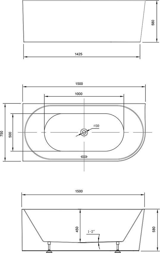 Описание ванна Vincea VBT-402-1500L