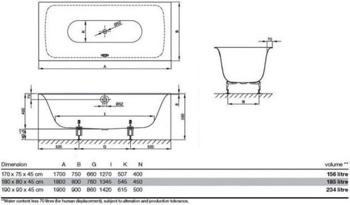 Ванна cтальная Bette Free с шумоизоляцией, для удлиненного слив-перелива, размер: 1800х800х450 мм. Цвет белый.