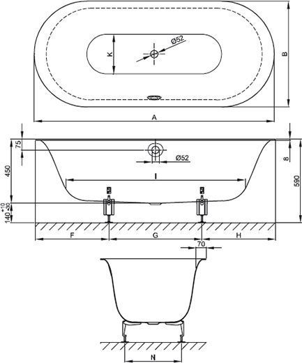 Ванна cтальная Bette Lux Oval с шумоизоляцией и покрытиями Bette Glasur ® Plus, для удлиненного слив-перелива, размер: 1800х800х450 мм. Цвет белый.