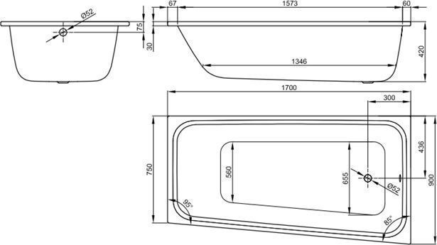 Ванна cтальная Bette Space M с шумоизоляцией, размер: 1700х900х420 мм. Цвет белый.