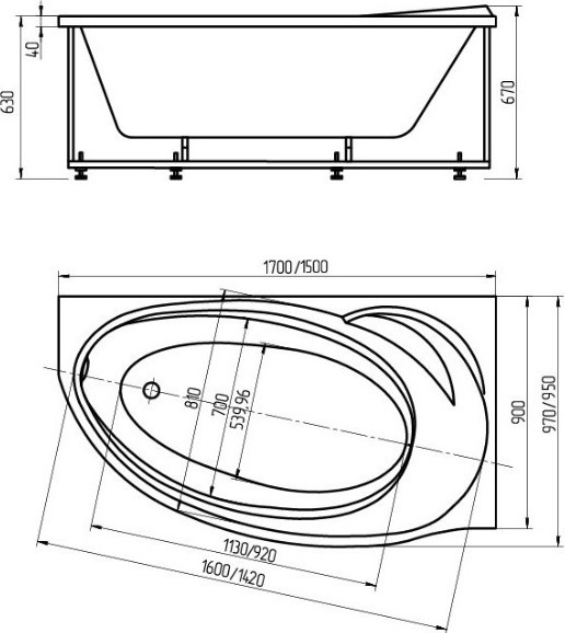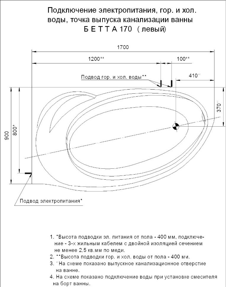 - Внутр. размер ванны 160 см