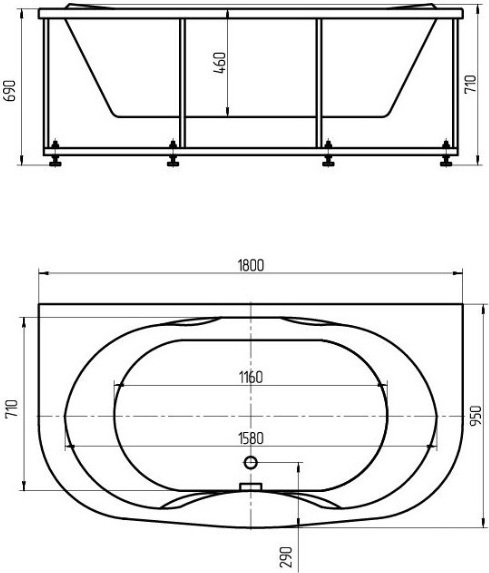 - Внутр. размер ванны 158 см